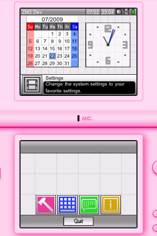 Popular the world over, the hit game console is now available for the iPhone and iPod touch! Double Sys can turn your device to a Handheld Game Console!! Features: - 3D environment - 3D Zoom to both upper and lower screen - Can change Case Color - Can change Game Card - Simulate game device OS - Play game to earn game point. - Using game point to unlock more games and case color. Game Cards: - Include two games: Pixel Mania(Music Game) and a SECRET GAME. Future Additions: - More Game Card - More Case Color - Microphone function Languages: - English Requirements: - iPhone and iPod touch - OS 3.0 compatible For more information, please visit our web site: www.ZM2Dev.com