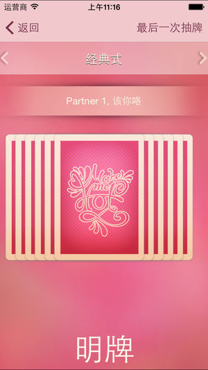 《让我嗨起来》是一款简单而充满神秘感的异域情侣前戏游。 此游戏之规则非常简单。 首先,可以看到一叠附有性感动作(或更加刺激火辣 )的普通卡牌。 当第一个玩家从卡叠拿牌后,第二个玩家必须在预定时间内为其表演该卡牌所示动作。 请注意,此规则并非一成不变,即并不是每一次都可以清楚地知道谁是表演者。当一张方块钻石卡牌出现时,该动作将由抽到此钻石卡的玩家自行完成。 在这个调情游戏中,您可以任意使用预定叠卡,也可以按照自己的策略出牌。在准备自己的卡牌时,您可以使用游戏内置的75种行为动作 或 通过自己的想象制定相关动作。 此卡牌游戏并未限定性取方向,其适用于所有情侣。因此,任何一对伴侣都可以…