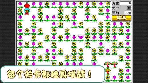 #无广告,无体力,畅快把玩# #同时在Google Play和360应用商店上线# 经典Windows桌面小游戏食人花(又名吃花,花之精灵,Zeek The Geek )强势登陆iOS,专门为iOS优化的操作,独有的即时存档功能,超多的关卡,快快下载,重温童年! 游戏玩法:点击地图控制小红人走向,拿到蘑菇。途中要注意不要被食人花吃掉!这个游戏的关卡很具有挑战性! 新功能“回退”:当你走错或者死亡的时候可以回退10步! PS: 想要拿到3星,需要收集关卡里的所有财宝箱 想要拿到高分,需要收集尽量多的财宝和黄花 擅用“菜单”中选择“即时存档”和“加载存档”可以防止失败后从头开始玩。 游戏特色: +230个独具挑战的关卡。 +多达20种关卡和机关。 +独有的即时存档功能,助你轻松过关 +支持iPhone 5宽屏显示。 +支持Retina显示。 +支持Universal通用版本。 +支持Game Center的排行榜。 +新浪微博,腾讯微博和微信求助或炫耀! +超多免费关卡即将更新! 欢迎任何意见,反馈,或者关卡求助,请联系我们 mginegames@gmail.com