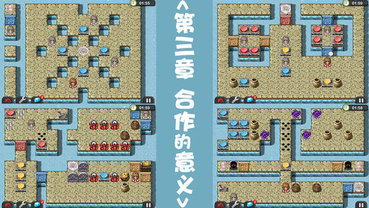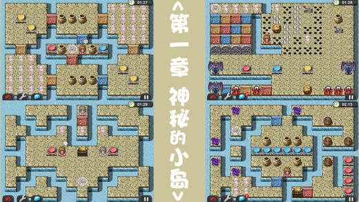 app史上最耗脑力的虐人游戏!如果你没有丰富的想象力,没有最强的分析能力,最棒的操作,极强的耐心,这绝对是个无法完成的任务! ============================================== 如果想找朋友一起研究欢迎加 QQ群:375193191 ============================================== 剧情介绍: 某天,叛逆的公主厌倦了吃穿不愁的生活,决定离开城堡展开自己的冒险,她穿洋过海来到了一个神秘的小岛,据说这里埋藏着巨大的宝藏,同时这里还居住着不少魔物,能不能满载而归一切都要看玩家你的智慧了~ =============================================== 冒险解谜要素: 1.推动罐子来解谜。 2.逃脱死神的追杀。 3.同时控制影子公主达成任务。 4.运用机关巧妙的设计陷阱。 5.规定时间内的任务达成。 6.逃脱的同时,拿到入手难度极高的隐藏宝物。 =============================================== 游戏中出现的道具和怪物们: 1.公主:玩家操控的主角。 2.宝箱:打开之后就可以获得宝物。 3.红,黄,蓝门:分别对应红,黄,蓝按钮,比如红色的按钮全部被按下,红色的门就会打开。门还可以在关的过程中强行破坏掉,有些时候需要灵活运用这招。 4.魔法阵:作为游戏过关的目的地,玩家需要控制公主走进魔法阵,不过魔法阵需要公主吃完地图所有的水晶石才有传送的能量,没有能量的魔法阵是无法传送走公主的。 5.罐子:可以推动的障碍物,玩过推箱子的话就比较容易理解,可以用来压住按钮什么的。罐子有个特殊的属性是可以被地面的尖刺破坏掉。 6.木桶:和罐子的作用差不多。只是多了一个可以推到水里当垫脚石的作用噢。 7.冰面:很滑,走一步就会滑到遇到障碍物为止噢,玩过滑冰类游戏的话一试就懂了。 8.水面:就是没办法走过去的。 9.尖刺:升起的时候就是障碍物,落下的话就可以通过了。被刺中的话就没法动了噢。 10.拉杆:控制尖刺升起和落下用的。 11.红色的独眼怪:障碍物,只有用滚石压死才能被破坏,没有别的破坏方法。 12.滚石:推一下就会一直往前滚,撞到拉杆的话,拉杆的状态会改变噢。也可以用来压死红色的怪物。 13.蓝色的大魔王:障碍物,普通的滚石压不死它们,反而会被反弹回去,必须用铁球才能破坏。 14.普通的铁门:障碍物,当所有的红色独眼怪都被杀光后才会打开。 15.魔法铁门:障碍物,当所有蓝色大魔王被全部消灭后才会打开。 16.幻影公主:能做到真公主大多数的事情。 17.箭头石板:公主站上去就会强制往箭头方向移动一步。如果遇到冰面就会滑很远咯。 18.黑洞:站上去后会把公主传送到别的黑洞的位置。当然对罐子什么的也是可以传送的。 19.死神:会追杀真公主,被它摸到就挂了,要巧妙的利用障碍物来阻挡它们。
