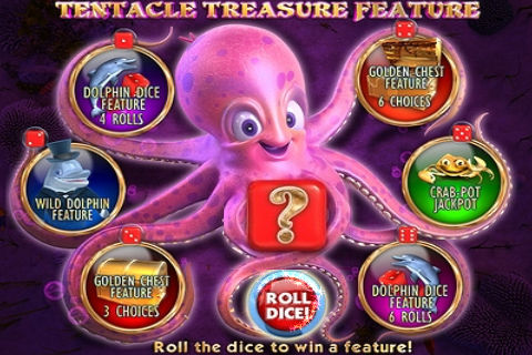 With three different free games features and the crabby Crab Jackpot, there's nothing fishy about this game... During normal play the Dolphin is wild and substitutes for all symbols except scattered clams. 3 or more clams triggers the Tentacle Treasure Feature. The Octopus holds 6 features in her mighty tentacles. Roll the dice and a feature is chosen! The Dolphin Dice Feature. The Dolphin Dice screen appears with Spins on the left and Multiplier on the right. The Octopus allows you to roll a dice to increase either spins or multiplier for the free games. During the Dolphin Dice free games special dice appear on reels 2, 3 and 4. These dice are wildcards and also increase your multiplier on winning paylines only! The Golden Chest Feature. The Golden Chest screen appears with 10 underwater treasure chests. The Octopus allows you to select either 3 or 6 chests. In each chest are either 3, 7 or 10 free games. The free games wins are all paid at triple normal pays. During the free games a new Golden Chest symbol is added to reels 1, 3 and 5. Each time a Golden Chest appears the free games multiplier increases by 1 and all Dolphin Wildcards on screen lock in place until the next spin in which no Golden Chests appear. There is no maximum multiplier! If no Golden Chests appear in a spin then all wildcards unlock and the multiplier returns to 3. The Wild Dolphin Feature. Never seen a dolphin in a tuxedo? You have now, and he is wild and triples your wins! You'll be swimming in cash! The Wild Dolphin Feature awards 20 free games with all wins tripled. Every 5 free games played one additional Wildcard Dolphin is added to each reels AND the lowest paying symbol is removed from the reels. A maximum of 5 Tuxedo Dolphins per reel can be awarded. Once all 9, 10, J, Q, K, A symbols have been removed from the reels no further symbols are removed. The Octopus can award the crab jackpot - and you can also win it during free games when 3 gold crab symbols appear. Open any 6 crab holders to reveal 2, 3 or 4 crabs inside. You need 10 crabs to fill each crab-o-tron. If you fill both crab-o-trons you win the jackpot! If you don't fill both crab-o-trons you win a consolation prize per crab found. This game is for entertainment purposes only. No real money can be won or lost. The odds of winning in this simulation are not the same as in real slot machines. Real slot machines are designed to make you consistently lose. You must be aged 18 (or 21 in some areas) to gamble. Pokie Magic supports responsible gambling and appropriate parental supervision.