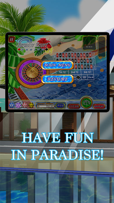 Welcome to Casino Paradise Resort Roulette! Get ready to win big with this real Vegas style roulette game in a Paradise beach environment with incredible graphics and settings! This game is available on iPhone, iPod and iPad. You will enjoy all the fun without having to take any cash out of your pocket. - Real life Vegas style roulette - Practice your strategies without losing real money - Place your bets and enjoy the game - Use Max bets to play aggressively - Have fun in a Paradise Resort Casino environment. - Play with friends in our Leaderboard. - Enjoy the awesome graphics and have great fun! Get ready to place your bets and win! Download Casino Paradise Resort Roulette now. Enjoy this amazing game to the max!