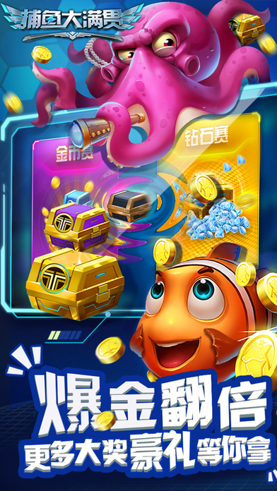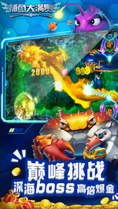 想要成为捕鱼大师吗?想要受万人膜拜吗?全新竞技捕鱼震撼来袭! 满足你那颗不甘平凡的雄心! 1、 创新与传承并存,打造全新竞技捕鱼玩法! 2、 多人同台竞技,激发你沉寂已久的雄心壮志! 3、 优胜略汰夺桂冠,淘汰赛制造就捕鱼大师! 4、 没钱捕鱼不用愁,任务福利拿到你手软! 5、 海底BOSS齐来袭,技能鱼助你登巅峰! 想要受万人膜拜吗?想满足你那颗不甘平凡的雄心吗?来《捕鱼大满贯联机版》,就有机会实现这些愿望哦!