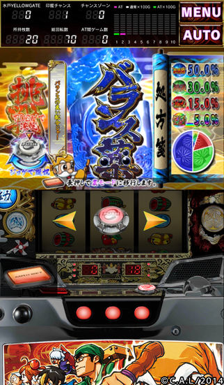 ■対応機種 iPhone4S/iPod touch第4世代以降 ■OS iOS6.0以上 ≪注意≫ 本アプリは縦画面専用となります。(横画面への切替はできません) 【重要】当アプリは「BGM選択」に追加オプション購入が必要となります。 あらかじめご理解の上、アプリをご購入ください。 2015年1月より全国一斉導入されたオリンピアの人気スロット機種。 『パチスロ黄門ちゃま 喝』がアプリで配信開始!! ≪アプリ紹介≫ 【POINT1】黄門ちゃま専用筐体をアプリで再現! 印籠シャッター、障子シャッター、御一行ランプなどの役物も完全再現!! 【POINT2】実機の演出は完全搭載! フルボイス&フルBGMは当たり前!もちろん実機の演出は全て搭載!! 【POINT3】超高速オートプレイに対応! オートプレイ速度が従来よりもアップ!快適プレイでサクサク楽しめます。 【POINT4】アプリをもっと楽しもう! 追加オプション(別売)を購入で「BGM選択」が設定可能に!! ※「サウンドパック」購入でAT中のBGMを実機同様に選択できます。 ※「フラグ強制」などの機能はございません。 (C)C.A.L/2014