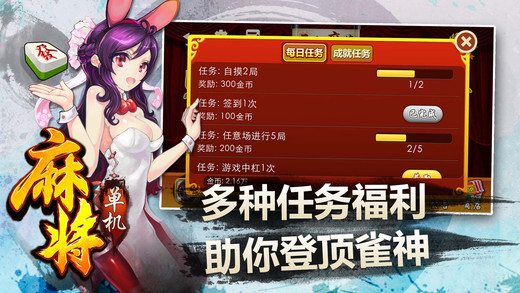【游戏介绍】 单机麻将是一款集国标、四川麻将(血战到底、血流成河)、二人麻将、长沙麻将、广东麻将、上海麻将等多种麻将玩法为一身的单机麻将游戏。 【游戏特点】 1)单机不耗流量,无须注册,人机对战,即开即打! 2)集多种玩法为一身,持续更新,总有一款适合你! 3)打牌、冲榜、完成任务,娱乐之间轻松Get成就! 4)即时参赛,多重奖励拿到手软! 【联系我们】 客服电话:4006305518