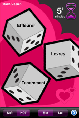 !! Bientôt une nouvelle version pour avec beaucoup de surprises...méfiez-vous des contrefaçons !! !! Les célèbres Dés coquins débarquent sur votre mobile dans une nouvelle version 1.5, toujours plus HOT et pleine d’options !! Pimentez vos soirées et votre vie de couple. Le principe est très simple…