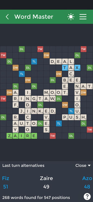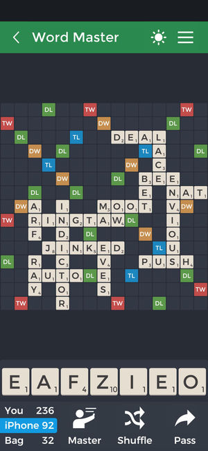 Advantages of the Pro version: **Ad-Free Experience** **7 additional board layouts** **Randomize the board. Mix up the DL, DW, TL TW tiles and give the game a new twist** **Option to enable the hints feature (Valid words appear above the rack as you form them by moving the tiles)** Word Master is a…