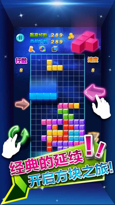 多牛百变方块—澳门方块绝对是一款不容错过的方块世界休闲小游戏!新增的六边形消除frvr玩法,在俄罗斯方块拖动模式的基础上进行改良,虽说是去除了横竖消除的限制,但是比传统方块世界的玩法更需要动脑动手!带你颠覆方块世界的认知,精彩方块大战等你来战,关注我们,更多玩法不断更新中…… 功能: +超级耐玩的方块世界 +自动储存游戏进度 +多款道具助你在你方块大战中无限徜徉 +不甘心方块大战辛苦战绩结束中断?复活功能满血补上 多牛百变方块世界五种玩法: 1、拖动模式:将屏幕下方的三个备选方块拖入1010方块宫格中,一行或一列铺满即可消除 2、下落模式:与俄罗斯方块的玩法相同,使用1010方块宫格旁边的四个键控制俄罗斯方块的下落,变换其形状以契合其他方块,使之整行消除。同时消除的行数越多,得分越高。 3、坠落方块:这个是俄罗斯方块的变形体,不同的是可使用1010方块宫格旁边的左右键控制方块颜色,3个及以上相同颜色的方块叠在一起即可消除。方块累计26行时游戏结束。 4、消除模式:过关玩法,消除1010方块宫格中,3个及以上相同颜色叠在一起的俄罗斯方块,达到目标分即可抵达下一关 5、六边形消除:新增的frvr玩法,打破了传统的俄罗斯方块消除方式,也是拖动模式的六边形消除增强版,上下左右,只要是整行都可消除