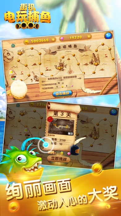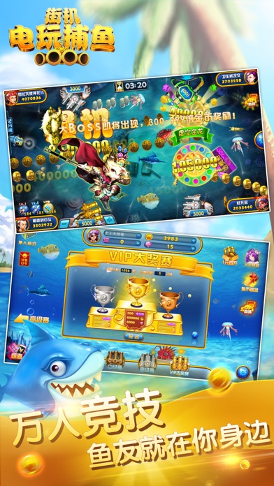 首款竞技捕鱼,得名次,赢奖品,成为捕鱼之王! ■荣获2015年ACG最佳街机游戏奖■ ■App Store五星推荐,捕鱼游戏中唯一全五星好评,值得拥有■ ■唯一一款全联网捕鱼,完美移植街机厅!如同身临其境!■ ■3D酷炫领奖台,尊享竞技之王,更有神秘大奖等你来赢。■ ■电玩城的经典,带你完爆所有捕鱼游戏■ 1. 2016电玩城最火爆捕鱼游戏,华丽登场,娱乐场免费抽奖。 2. 真实100%还原捕鱼达人千炮版,街机捕鱼,千炮捕鱼、金蟾捕鱼等所有街机捕鱼版本,同时增加了闯关提升趣味性。 3. 一网打尽、大三元、大四喜、同类炸弹,全屏炸弹、能量炮等经典玩法。 技能介绍: @比赛:首创比赛模式,万人同时竞技。使用超级武器勇夺第一名吧! @远征:独创远征玩法,各种大小BOSS守关,过五关闯六将,成为捕鱼至尊! @激光炮:激光所过之处鱼儿皆受到伤害,抵抗力稍有不强的鱼儿就会被收为囊中之物。 @范围炮:指哪打哪,Boss克星;点击目标,范围炮发出的炮弹直指目标,大幅度提高暴击指数和杀伤力,超强的重炮打击感。 @采金船:充值越多,彩金越大。玩的更爽! @界面:邀请知名眼科专家合作,首创清新不伤眼画面。 @音效:3D环绕杜比音效,让您身临其境,捕鱼爽翻天。