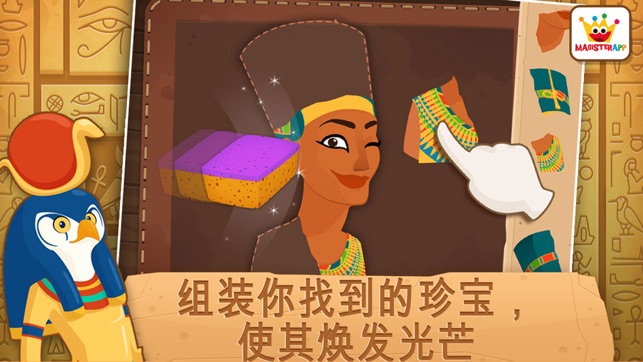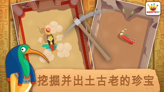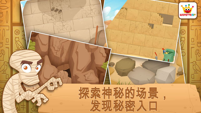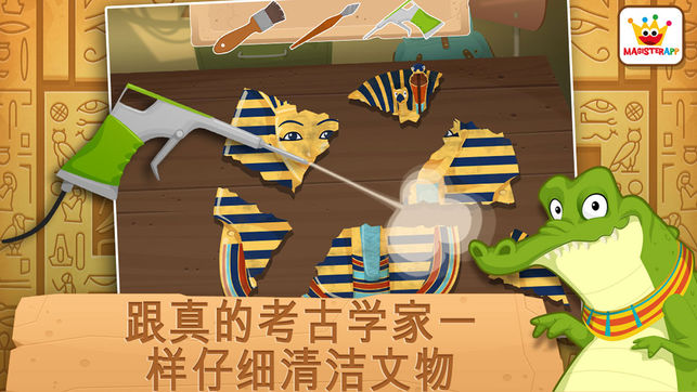“非常好,还有教育性,但是我的藏宝图应当保密。”图坦卡门说 “太好了,这让我想起我小的时候。”克娄巴特拉女王说 你们知道伊希斯女神的故事吗?不知道?没关系,通过这个程序你们可以学到很多有关古埃及的新奇事物 所有小朋友们都喜欢查找神秘房间的入口,然后就像一个考古学家一样开始挖掘,寻找埋藏在金字塔内的所有文物和珍宝。找到珍宝后,要全部送到实验室去进行清洁和修复。 最后要画一幅色彩丰富的详图,里面有很多专门为小朋友们设计的可爱的动画,还有许许多多有关埃及的教育信息。 玩了这个游戏之后,小朋友就会迫不及待地去挖掘和修复他们找到的各种文物。 所有这些都保证让你和你的孩子们乐在其中。 - 挖掘…