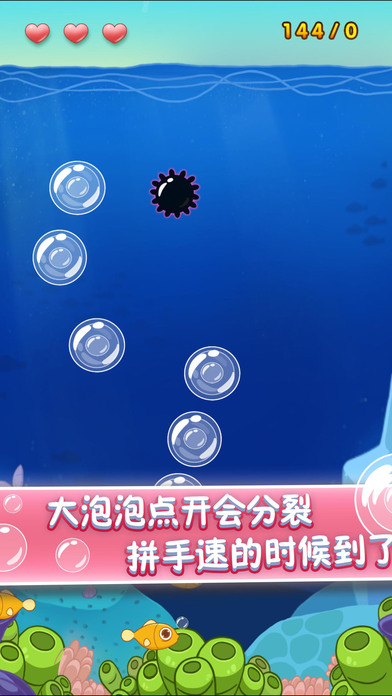 点泡泡游戏是一款点击消除类休闲游戏。 游戏的目标就是尽全力阻止泡泡到达水面,泡泡到达水面后会自动爆开。如果自动爆开的泡泡达到三个,游戏就会失败! 你可以用手指点击泡泡或者拖动手指划过泡泡,两种方式都可以把泡泡戳破。 游戏还支持多点触碰,你可以几个手指同时戳破多个泡泡。当单手指忙不过来的时候,其他的手指一起上吧。 那么,快来挑战吧! 提示: -------黑色泡泡被戳破后会出现大片水墨,处于水墨中的泡泡无法被点中 -------黑色泡泡会直接飘出屏幕,不会自动爆开。 -------大泡泡点开后会分裂出三个泡泡