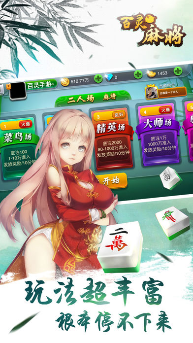 “幺妹儿,打麻将的诀窍是什么?” “少吃,多摸,拼命碰,不放炮。” “巴适!咱们比试比试?” “好嘛,姐要打一亿飘两亿的。” ◆ 百灵麻将,百灵手游再推新品。汇聚各地帅哥美女,网罗全国高手精英,挑战您的麻将牌艺与技巧,争做雀神雀霸。经典国标麻将玩法、血流成河玩法、二人麻将玩法等,每局都有任务奖励、多倍番数,体验更加休闲、安逸的麻将乐趣。 ◆ 麻将是经典国粹棋牌游戏,国人最热爱的桌上游泳,据研究老年人多打麻将还可以预防老年痴呆症。有别于斗地主、牛牛、德州扑克、炸金花等扑克牌游戏,麻将变化多样,可胡出各式各样的牌型,考验策略技巧,是令人乐此不疲的博奕游戏。赢了还可像休闲益智类的节奏大师、消灭星星、popstar一样分享积分和排名到QQ、微信、微博、陌陌中得瑟得瑟。 ◆ 游戏特色: 1.二人场为经典国标玩法,比赛场积分赛制; 2.四人场为血流成河玩法,赢了还可以再赢; 3.单机含二人和四人玩法,无需网络随时可玩; 4.每局都有相应任务,完成即可多翻N倍; 6.大牌可胡高倍番数,一把将对家清光; 7.掷出的骰子作为当局倍数,小手一抖高倍我有; 8.梦幻界面,操作简单,休闲放松的最佳选择。 ◆ 三元兼四喜,满贯遇全幺;花自杠头发,月从海底捞。 ◆ 温馨提醒:适度游戏,坚持锻炼,享受生活! ◆ 微信公众号:百灵手游,客服QQ:10249203。
