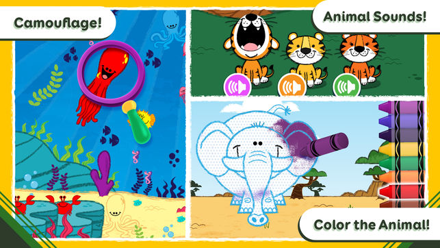 Budge Studios™推出绘儿乐彩色生物游戏!探索地球,发现充满生机的色彩世界,欣赏奇异的动物以及了解基本的地理知识!在这段充满趣味的教育之旅中,您的宝宝将完成一系列令人激动的迷你游戏,这有助于他们在培养自身观察能力的同时了解动物的身体部位和声音。 特色 • 通过各种教育类迷你游戏探索地球 • 认识20种奇异的野生动物,每一种都有着各自独特的有趣特征 • 手指滑动,转动三维互动地球仪,指出动物所处的地理位置 • 通过“动物彩绘”游戏了解动物的身体部位 • 在“动物之声”游戏中放声呼喊 • 在“奇妙伪装”游戏中寻找隐藏的动物 • 在“喂食”游戏中培养手眼协调能力 • 在“趣味匹配”游戏…