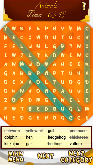 Ultimate Word Search has 63 English, Spanish, Portuguese, German and French word categories filled with fun word search puzzles. If you like Word Search puzzles, then this is the game for you! With great background music and 6 different themes including Newspaper, Christmas and Letter Soup to choose from, you can enjoy it the way you like. Select the words by tapping on the start and then tapping on the end of the word you have found. When the correct words are found they are automatically crossed out. Find all 12 words to get a new puzzle. English categories include: Vocabulary Words 1, Vocabulary Words 2, Vocabulary Words 3, Vocabulary Words 4, Vocabulary Words 5, Adjectives, Verbs, Animals, Christmas & Winter, Clothes, Countries, Elements, Foods, Fruits & Veggies, Human Body, Kings & Pirates, Plants & Trees, Sports, SAT I, SAT II, SAT III, SAT IV and SAT V Spanish categories include: Vocabulary Words 1, Vocabulary Words 2, Adjectives, Verbs, Animals, Foods, Plants & Trees, Sports Portuguese categories include: Animals, Christmas & Winter, Clothes, Countries, Elements, Foods, Fruits & Veggies, Human Body, Kings & Pirates, Plants & Trees, Sports German categories include: Animals, Christmas & Winter, Clothes, Countries, Elements, Foods, Fruits & Veggies, Human Body, Kings & Pirates, Plants & Trees, Sports French categories include: Animals, Christmas & Winter, Clothes, Countries, Elements, Foods, Fruits & Veggies, Human Body, Kings & Pirates, Plants & Trees, Sports Features: - 6 different themes to choose from. - 63 word categories with advanced engine to avoid repeats. - Find all 12 words to complete the puzzle. - Helps increase both vocabulary and spelling ability. - Dictionary lookup within app for English words from 6 reference sites. - Great background music and sound effects. - Fun and educational at the same. - Auto-save when you close it or answer call during game play so you can continue where you left off. We hope you enjoy Ultimate Word Search!