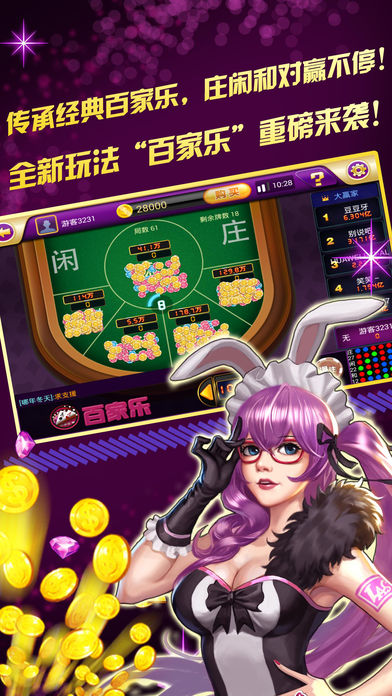 传承经典百家乐,庄闲和对赢不停! 全新玩法“百家乐”重磅来袭!世界经典,百年传承,老虎机娱乐格局更添精彩! “百家乐”是世界级经典娱乐玩法,玩家可以在游戏中,通过对趋势的判断和胜率的计算来进行下注,赢取给力奖金。 游戏分为庄、闲两家,每局游戏会为庄家和闲家分别发放2到3张扑克牌,牌面点数大的一方赢。若玩家在开牌之前选对了赢家并有下注,就能获得丰厚的奖金。50%的超高胜率,让您玩爽赚翻! 游戏还设有庄对、闲对的彩头,当庄家或闲家的牌型出现对子时,买中彩头的玩家将获得高达11倍赔率的彩金。 客服电话:027-86698385 客服qq群:425083515