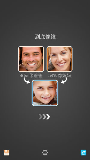 这是一个神奇的应用,可以用于测算你是像爸爸多一点还是像妈妈多一点。从相册或相机中导入父母及自己的照片后,该应用会自动检测头像并使用现今最强大的算法统计头像的相似度。你可以将测试结果分享到朋友圈或微博,让大家评判准不准。 特色: 1. 可从相册或相机中导入照片; 2. 自动检测照片中所有人脸,可自由选择其中某个人脸区域; 3. 自动测算脸部相似度; 4. 提供分享到QQ,微信,微博等社交网络的功能.