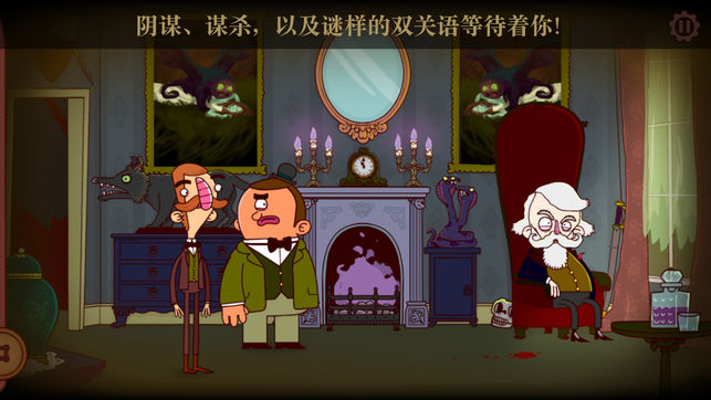 《伯特伦·费德历险记》是由Rumpus Animation倾力打造的冒险解谜游戏,将侦探推理电影的经典公式与动作元素完美融合在一起,悬疑刺激之间不失诙谐风趣,滑稽的角色也相当讨喜。玩家只要点击游戏画面热点,就能轻松操作角色,就从今天开始化身为大侦探展开冒险之旅吧! 诚如本游戏首席男主角伯特伦·费德所说:「在维多利亚时期的伦敦上演一场充满黑色幽默、惊悚谋杀与悬疑推理的点击式冒险游戏,绝对是你今天玩过最棒的游戏!」 【故事提要】 18世纪维多利亚时期伦敦,一股黑暗势力正悄悄逼近…神秘的疯狂杀人魔杰夫逍遥法外,伦敦市镇人心惶惶。怀才不遇的伟大探险家伯特伦·费德此时意外卷入了一桩无名尸案,为了揪出…