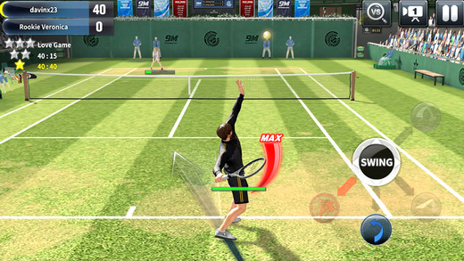 您从未体验过的网球游戏震撼来袭! 网球的极限!全民网球(Ulitimate Tennis)! 在移动终端游戏中首次采用“布料模拟(Cloth Simulation)”, 连衣角的轻微飘动都呈现得那么逼真! 最适合移动终端的操作方式、向玩家提供的便利性、 个性十足的多种逼真角色将会让您感受到更高层次的网球游戏! 官方社区:http://www.mobirum.com/9tennis 【游戏特征】 ▶实时对战模式 通过对战模式,可在网上与全世界的玩家一决高低。 ▶逼真的动作 在移动终端游戏中首次引入“布料模拟(Cloth Simulation)”技术, 连衣角的轻微飘动都呈现得那么逼真! 采用动态捕捉和Havok物理引擎,模仿实际网球动作, 呈现逼真的角色动态。 ▶个性十足的角色 您可以遇到各具魅力的50名角色。 除了21名选手身穿的服装以外,还有200多种服装和饰品, 您可借此装饰独一无二的角色。 每位选手都拥有各自不同的属性和技能,具有与众不同的游戏风格, 您可以采用多种方式培养选手。 ▶最适合移动终端的操作方式和便利性 支持纵横画面。 可简单操作的单手模式和较为细致操作的双手模式 供您随意选择操作。 滑动触屏操作方式,进一步强化了触屏的优点, 您可以用既简单又另类的操作方式,尽情感受游戏的无限乐趣。
