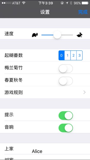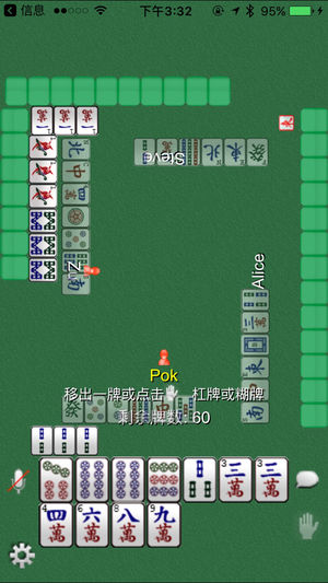 通过游戏中心在互联网上与朋友和其他玩家打麻将: 任选由两个到四个人, 然后其余席位由电脑打; 你也可选择单人对电脑。 点击齿轮图示看游戏规则,或更改游戏难度及背景。本游戏允许0底番鸡糊,可更改0-3分起糊。未達底番不能胡, 如果別人要碰自然優先。反之達底番當能胡。如多人能胡則按要座次決定誰胡牌。 这程序带给你真的麻将体验, 好比可以用手抓牌, 出牌, 推牌来报吃,碰,杠,糊。你也可以随意排列手牌和移动已被打出的牌。 另一方面, 你亦能便利的用点击手掌图标来报吃,碰,杠,糊。你还可以在手牌上方横刷来自动排列手牌。 程序提供各种的难度选择, 例如速度起,糊番数和是否打花牌,打季牌。 可选择整…