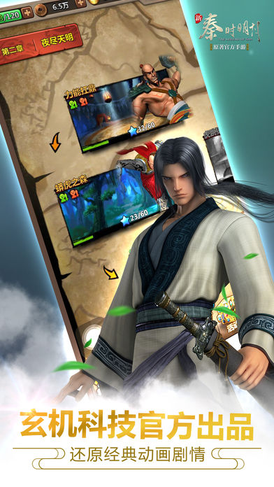 【游戏简介】 《新秦时明月》手游是由鹿游网络研发,玄机科技发行的国内创新竖版即时制战斗手游!给你带来身临其境的代入感。 最强资料片“神器争霸”已强势登场,全新系统全新体验。且同步《秦时明月五君临天下》动漫,登录游戏抢先体验精彩剧情。 玄机科技《秦时明月》团队原班人马倾情奉献,最棒的画面,最强的声音。 蓬莱神器现世,颠覆战局举手之间。稀有多彩宝石出现,属性搭配再显变化。 新增师徒系统,江湖不再孤身一人。 《新秦时明月》采用Unity3D引擎开发,重现《秦时明月》连续剧的经典剧情,展示瑰丽古代文化,带领玩家梦回秦时,穿梭百家争鸣的大秦帝国,斡旋庞杂错综的势力交锋,体验一段弥足珍贵的秦时岁月! 【游戏背景】 春秋战国末年,七国纷争,秦灭韩、赵后,攻取之外,小则获邑,大则得城,所向披靡。秦王嬴政之野心,昭然若揭。 天明误入太一殿,无意间窥探天机——成年后的他们,埋伏在嬴政东巡的必经之路,等待发动对嬴政的致命一击。然而,结果未定,却被星魂发现了踪迹,一路追杀。幸得天下第一剑盖聂相助,艰难脱险。只是盖聂疲于应对之际,月神对天明施下封眠咒印,将他的记忆封住。 帝国铁骑受命围剿一大一小两个头号叛逆,他们又该逃往何方? 天明能否忆起这段意外获知的重要机密? 东巡之战电光火石之间,谁能君临天下? 我们一起见证! 【功能介绍】 蓬莱神器,五行相融显峥嵘 在最新的资料片“神器争霸”中,新增全新系统蓬莱神器。玩家们只需要满足游戏内规定的相关条件,就可以获得相对应的神器并装备。一共有5个属性的神器可供玩家给不同的装备。每个神器可通过神器碎片升级进化,并附加额外属性。佩戴神器即可在战斗中相应触发特效,使战斗不再单调,配合适当技能更足以一举扭转战局! 师徒系统,执剑相伴闯江湖 玩家战队等级60级可以收徒,每天可免费赠给徒弟好礼并且还有金币奖励,徒弟也可回赠礼物。当徒弟出师之后,师傅即可收到系统给予神器碎片作为奖励。每个玩家最多可同时收取3个徒弟,还嫌自己的江湖不够精彩,孤孤单单无人做伴,那就快去找寻自己的徒儿吧。 宝石系统,角色养成不单调 在《新秦时明月》“神器争霸”资料片中,宝石系统再度进化。玩家可以通过为角色装备宝石来达到和穿装备一样的属性加成效果,但是相同的宝石在一个角色身上只能装备2颗,但是每个角色都可以开启5个宝石镶嵌槽。增加全新属性稀有宝石,穿戴后可增加攻击速度,并且开放新紫色宝石,可由金色红色宝石合成组成双重属性,使角色属性变化更具多样性! 全新活动,稀有道具轻松得 多重活动,缤纷来袭。每日都有不同活动可供玩家参与。幸运转盘给你机会一飞冲天,揭皇榜更有概率获得10倍元宝奖励,新增天机星云阵更可让你排兵布阵、突破阵型。诸多活动让你轻松获得元宝和稀有角色、道具奖励。自此不在感慨升级辛苦,战斗艰难,让你轻松畅玩,争霸江湖。