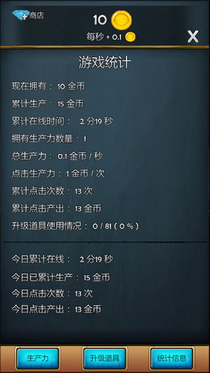 《点金术士》是一款放置类点击游戏。 这是一款小巧精致的游戏。有兴致的时候你可以点点它,体验一下满屏掉金币的畅快,累了的时候你把它放一边,它也会默默地为你生产金币,等你回来的时候又有很多金币让你购买生产力和升级道具了。它就是这样一款让你省心又能给你带来开心的小游戏,它的名字叫《点金术士》。不管你在地铁上,公交上,等人的时候……它都能给你的碎片时间带来欢乐。 游戏中,你置身于一座史前矿山之前,点击矿山即可生产出金币。使用金币可以购买各式各样的生产力和生产力提升道具。随着游戏的进行,你将拥有越来越高的产金能力,实现你内心的一个点石成金梦。还在等什么?一起来吧!…