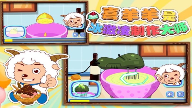 冰淇淋是很多人爱吃的甜品,自己动手制作冰淇淋更有一番乐趣。现在,冰淇淋大师喜羊羊开班授课啦,手把手教你做可口的冰淇淋。在游戏中,你需要准备各种食材,将黄油切片,用勺子敲打鸡蛋,将白糖倒入碗中,并且加入香草和橙汁。当然,你可以在冰淇淋中加入巧克力,这会让冰淇淋更加的美味可口! 游戏步骤: 1.用勺子敲碎鸡蛋,并把它们放入碗中 2.将少量的白糖放入装着鸡蛋的碗内 3.摇动你的设备,将香草倒入碗中,香草可以让你的冰淇淋更美味 4.挤半个橙子,将橙汁放入碗中 5.用电动搅拌机将冰淇淋与各种材料香精充分融合 6.将奶油倒入碗中,但尽量不要溅出来 7.解冻冰淇淋