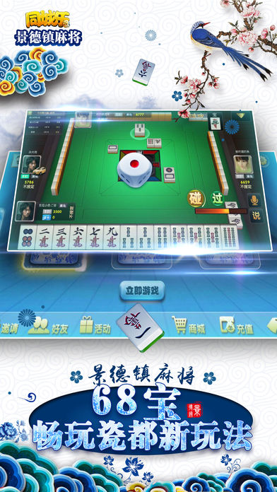 地道景德镇麻将规则,新版上线,全新玩法。邀好友开设包房,一键直达包房,方便快捷,打积分随意畅玩。包房设有录像及回放功能,全程防作弊。每日大奖赛,签到领金币,万人在线陪你玩!