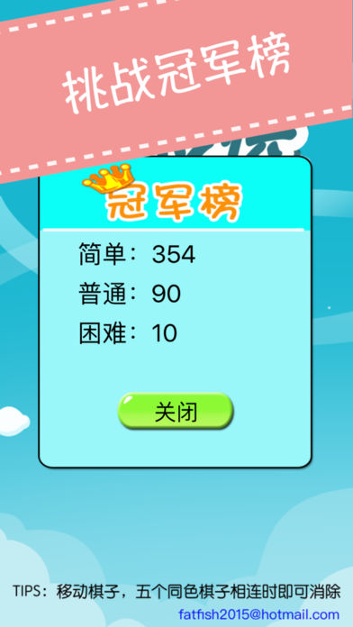经典的五子连珠游戏,不断挑战自己 本游戏无广告 游戏玩法: 1.通过点击可以移动棋子 2.五个棋子相连即可消除(横、竖、斜均可) 3.如果移动后没有消除,则会生成新的棋子 难度选择: 简单:棋子共有6种颜色,每次生成3个 普通:棋子共有7种颜色,每次生成3个 困难:棋子共有7种颜色,每次生成4个 分数破千即为高手 我们是一个新成立的工作室 对游戏有任何意见或建议请加群:303742856 水煮肥鱼
