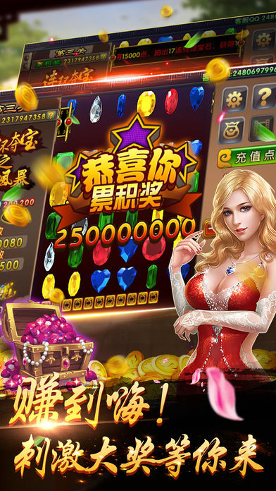 描述:连环夺宝是一款风靡彩票投注站、即投即中的连线消除游戏。每次游戏使用游戏点数最低10点,最高25000点,押注越多,中奖越多。完美还原投注站玩法,游戏设投注、游戏和探宝三个环节。用户在投注环节进行投注,获得与投注额相对应的游戏点数进入游戏环节进行游戏,游戏过程结束后,根据游戏点数进入中奖环节,获得相应的点数,一次完成。 玩法介绍: 1.游戏环节中,用户可自愿选择1-5个金刚钻进行游戏,每个金刚钻可使用游戏点数最低10点,最高5000点。在游戏过程中,游戏点数不足时,用户可充值获得相应游戏点数继续游戏,或退出游戏。 2.游戏过程共分为三关,三关分别在4×4、5×5、6×6的方形区域内派发宝石,还包括一种特殊钻头。 3.系统在每一关随机派发相应数量宝石,若有符合游戏规则的宝石组合,即可消除并获得相应游戏点数,同时系统继续派发宝石生成新的宝石组合,直至不再形成符合游戏规则的宝石组合。 4.在每一关累计消除15个钻头时,游戏进入下一关,第三关过关后游戏结束进入“龙珠探宝”。 5.游戏过程结束后,根据本场游戏所得游戏点数进入不同级别的中奖环节“龙珠探宝”获得最终点数。 6.玩家若在一场游戏中途离开,可自主选择退出游戏或保留游戏。若选择退出游戏,即视为玩家自愿 放弃游戏当前状态及本场游戏点数:若选择保留游戏,玩家应在即日30天的保留期限内继续本场游戏,超过保留期限视为自愿退出游戏。 再也不用在投注站里蹲坑了,快来这里连环夺宝吧!