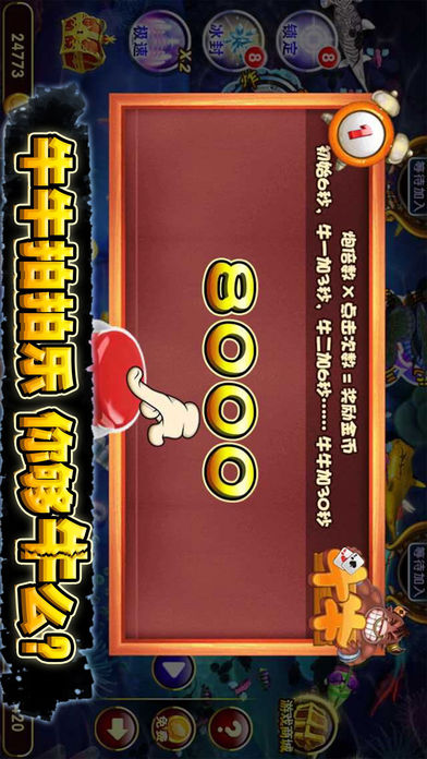 1. 2016电玩城最火爆多人联机捕鱼游戏。 2. 真实100%还原街机捕鱼加强版本。 3. 牛牛拍拍乐,捕鱼中体验斗牛的乐趣。 4. 真实还原浪漫捕鱼,唯美画面,真人搞笑配音提升趣味性。 5. 百万福利大赠送,幸运转盘转不停,时间宝箱天天开。 6. 一网打尽、大三元、大四喜、同类炸弹,全屏炸弹、能量炮等经典玩法。 7. 节日福利大赠送,海量金币每天免费领取。 ===================================== 【游戏特色】 1.捕鱼的玩法,牛牛的规则。 2.拍拍乐的刺激,点击速度无极限,打造极速的传奇。 3.VIP将会享受,技能永久免费使用功能,每日任务更多,领取拿到手软。 4.时间宝箱天天开,12345幸运转盘转不停! 5.3D立体Boss海底闲庭信步,挑战Boss:升级你的超级武器,使用独门秘籍与Boss决战到底! 6.房间有限制,房间越高级使用炮倍数越大。 您还在等什么,牛在哪里?手指就在哪里。让我们一起来体验牛牛捕鱼的电玩新世界!! ===================================== 【联系我们】 客服公众号:jiejidaren1 客服电话:4000696960 客服QQ:3313510768 关注公众号jiejidaren1,提出好建议,立即领取大礼包!
