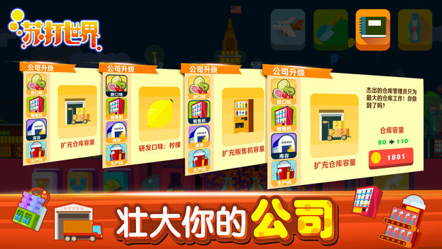 春节将至,苏打世界的市民们都异常鸡冻! 因为鸡年红包活动上线啦! 城市中会掉落红包,金额随鸡,捡到就可获得压岁钱! 攒够压岁钱兑换鸡年专属市民:福星、禄星、寿星和可爱的小鸡吉祥! 通过iMessage将红包发给朋友,趣味问答看谁最鸡智! 还有春节专属小鸡吉祥系列表情,也可以在iMessage中欢乐发送! 苏打世界制作组祝所有玩家鸡年大吉,万事如意! —————————————— [苏打世界] 欢迎来到苏打世界! 用最短的时间成为世界第一的苏打公司! 罐装苏打填满库存,补货到遍布世界的贩卖机,给市民们送上各种口味的苏打,并为他们建造心愿建筑! [经营策略] 提升产量还是研发口味? 增大库…