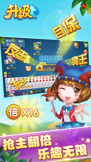 ------经典免费 扑克游戏------ 全民特色经典游戏“升级”上线了,多乐够级、多乐保皇团队精品续作。 升级游戏,又叫做双升、双扣、拖拉机或80分(八十分)。升级单机版免费下载、无需注册、安装后即可立即游戏,无需担心人手不够,一人也能畅快打双升。 --------升级单机版游戏特色-------- 【界面精美】 多乐团队专门打造的升级游戏iphone版,为手机&平板特意适配,带给您优质的视觉体验。 【操作简单】 升级游戏单机智能选牌,一指选牌,简单便捷,玩升级就是这么轻松。 【单机战绩】 谁说一个人打升级无聊?打完一轮战绩记录,胜负局数挑战不断,乐趣媲美升级真人版。 【 经典重现…