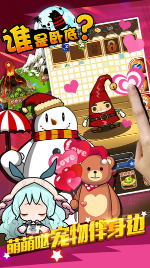 《谁是卧底》又名《天黑请闭眼》、《杀人游戏》;是一款呆萌炫酷、逻辑极强、模式众多的多人在线文字杀人游戏 【游戏特色】 ---多人参与拼智力! 真正的多人在线大型杀人游戏,真正的公平快速的文字游戏!不用再害怕人员不齐和场外因素!带上你的判断、你的推理,来谁是卧底比拼智力吧! ---超多职业任你选! 游戏中三大阵营,十余种职业,多种模式随心选择!每种职业都有不同的玩法与技能,游戏独创新模式“怒火街头”,带你领略爆炸的快感! ---在线好礼送不停! 只要每天累计在线时间,就能获得大量金豆及银币!更有机会获得商城的精美时装及特效炫酷的道具!不花钱也能玩的很开心耶! ---超萌宠物求包养! 超赞的宠物系…