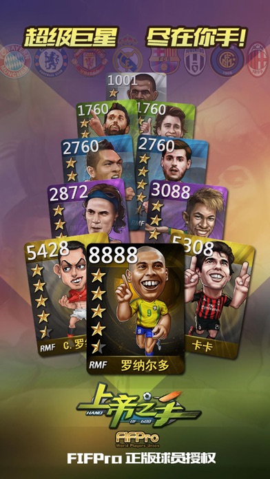 ·FIFPro正版授权,真球迷情怀之选! ·角色扮演,与小贝C罗共同开启球星之路! ·球场争霸,带领大表姐征服世界! 【游戏介绍】 《上帝之手》是由FIFPro官方授权新浪游戏独家代理,倾力打造的足球竞技手游。 低操作难度,高游戏策略,丰富的球员种类,多样化的培养路线,刺激的竞技玩法,丰厚的福利活动,一款专门为足球玩家打造的足球游戏,球场争霸,尽在上帝之手!。 【游戏特色】 『指尖操作』 指哪射哪,全新的足球游戏方式,弧线球、电梯球、全靠你来实现! 『球星云集』 C罗小贝,统统归你所有,球员羁绊,打造最强足球阵容! 『角色扮演』 球星之路,新的球王,就在你手中诞生! 『阵型克制』 最强大脑玩转最强足球游戏! 【福利活动】 ·选择喜爱的球队即可获得该球队顶尖球员! ·累计登录即送顶级足球明星! ·球场争霸,价值千元道具触手可得! ·丰厚的钻石奖励助你轻松集齐球员 ·球迷宝1次投资多倍收益,专业球队经理人的明智之举 【联系我们】 官方贴吧:上帝之手吧 官方微博:上帝之手 官方微信:xlcjty 客服邮箱:kefu@game.sina.com