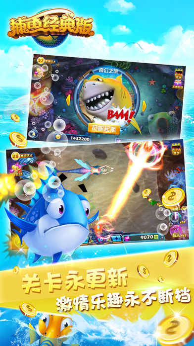 最经典的捕鱼游戏震撼来袭 大量免费金币等你领取,让你天天玩到嗨, 弹无虚发能反弹,多种子弹任你挑, 画面更精美,操作简单上手快, 新增多种炫酷道具,引爆全民捕鱼热潮 游戏不卡不闪退,稳定流畅就是这么任性, 关卡全新升级,更多好玩的体验等你来探索 超嗨超刺激,一起领略真正的海底世界吧!