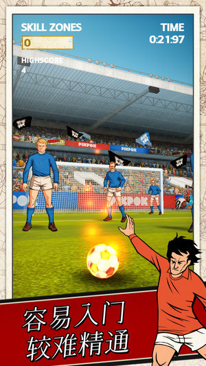 用直观的“划刷踢射” 控制, Flick Kick®足球不仅易玩,还对高手深具挑战性! 从球场各处轻拂手指可打出曲线球、吊球、传球及射门等动作。在多种模式下测试你的技能,包括靶心模式及限时攻击!升级你的球队工具,球及球迷来展现你的真风采! 你能获得关键射门的得分吗? 特征: - 直观的轻拂踢球 – 用手指轻划过球,可通过传球、曲线球等避过防守的人墙 - 独特的足球“黄金时代”展示 – 让自己沉浸在怀旧时代的图像 - GameCenter 排行榜和成就,让全世界看到你比好友们厉害多了 还具有如下多种模式: - 在线多人游戏和经典的传球踢球! - 练习模式,让你磨练你的技术 -…