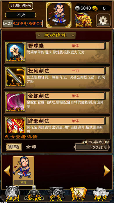 全自由开放式单机武侠rpg,游戏中场景自由进入,无所限制,随心所欲。玩家在游戏中的目标是收集全十四本天书,参加武林大会,回到现实世界。 在游戏中玩家可邀6位非主角控制的人物(NPC),参加队伍,而且游戏中如果行善做好事多,则玩家的品德属性值高,这样一些人物才愿意与你为伍。反之,如果杀戮过重,最后过关时将遇到正派大侠们连手攻击,就较难回到现实世界里来了。[1] 游戏中的经验值分为两种,一种是等级,可通过打败敌人得到晋级;一种是武学点,武学点可以提升使用的武功技能等级。