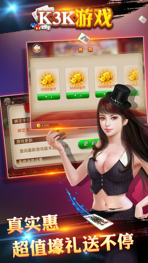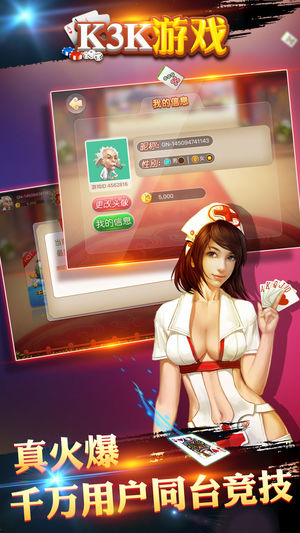 K3K游戏大厅,掌上触手可及,最专业的棋牌竞技平台。玩游戏,上K3K游戏大厅。 游戏特色: 1、精品棋牌合集,包括K3K捕鱼、K3K斗地主、K3K捉鸡麻将、K3K牛牛等,一次下载即可畅玩所有游戏! 2、统一K3K账号登陆,随时随地玩K3K游戏! 3、严防作弊,公平竞技,进入游戏自动配桌,输赢全靠水平!