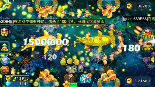 1:2016年最火爆的捕鱼游戏,华丽登场。 2:完美移植街机室多人联机捕鱼,真实联网,超流畅的体验。 3:超刺激的单人闯关模式,神秘的关卡等待你来探索,关卡福利等你领取。 4:100%还原街机捕鱼,改进游戏玩法。 5:每天海量金币免费领取,挑战关卡、完成任务、击杀BOSS都有大奖。 6:超刺激“狂暴技能”、“加速技能”、“锁定技能”、“冰封技能”,更大机会赢走大奖。 7:完美的融合单人闯关游戏与多人联网游戏,让你随心体验不一样的玩法。 ======================================================================== 【游戏特色】 1:自动挂机功能,让你游戏更轻松快乐。 2:召唤功能,让你随心呼唤想打的鱼。 3:各项技能搭配,火力全开,超高机会击杀BOSS,无底线大奖HIGH翻全场。 4:联网游戏简介如下: A:每个房间都有不一样的游戏体验。 B:真人联网,万人竞技,超流畅的体验。 C:锁定技能、冰封技能让你更容易击杀BOSS,赢走大奖。 D:更有丰富的奖金鱼,超刺激的幸运大抽奖,超高的奖励。 5:单人游戏简介如下: A:总计20个神秘的关卡,每一关都有不一样的体验。 B:每通过一关都有超高的奖励,并且每日登陆还可以领取一次红包。 C:加速技能、狂暴技能、锁定技能、冰封技能让你完爆所有的BOSS。 D:神秘的潜艇、超简单的任务,福利送不停。 ========================================================================