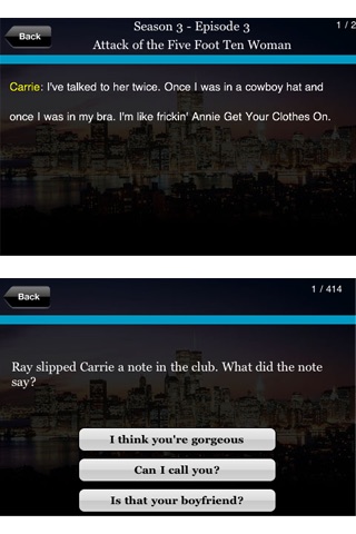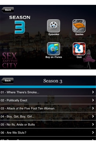 Sex And The City Fans App - SATC Fans App Are you a Sex and the City Fan and follow all six seasons of the series on television and also watched both the Sex and the city movies because you could not get enough, then this Trivia Quiz is for you. This show is set in New York City, the show focused on four women. Carrie Bradshaw and her three best friends, Miranda Hobbes, Charlotte York and Samantha Jones. The women discuss their sexual desires and fantasies, and their travels in life and love. This quiz checks how closely you observed the show and the movies. This App and Comprehensive Quiz will test your knowledge of the TV series that changed the way people see single women in the big city. Quiz questions are designed to allow you to gauge how much you really know about your favorite single gals and their entanglements.
