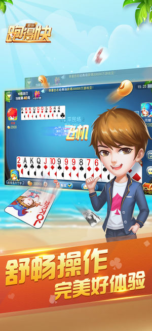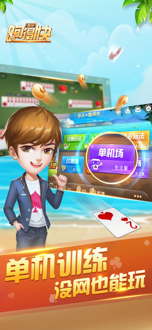 ——跑得快扑克游戏—— 跑得快流行于湖南一带,盛行于大学校园,江浙一带叫“关牌”,3人对战,16张牌,老少皆宜,有牌必出,放走包赔,炸弹现结,下载、无需注册、无需充值, 安装后即可立即开始跑得快。 跑得快可媲美QQ、JJ、联众、波克、博雅等斗地主,玩法比斗地主简单,过程比斗地主刺激。 ●跑得快独家特色● ◆无与伦比的游戏体验 极致精简,纯正湖南跑得快,内存占用少,游戏精致又流畅; 俏皮表情包,出牌炫特效,超精美画质不打折扣! ◆全新跑得快玩法乐趣多 单机场,斗智斗勇,其乐无穷; 联网场,联网对战,欲罢不能; 擂台赛,随机应变,逆转乾坤; 私人场,亲朋过招,好友比拼! ◆联网对战省流…