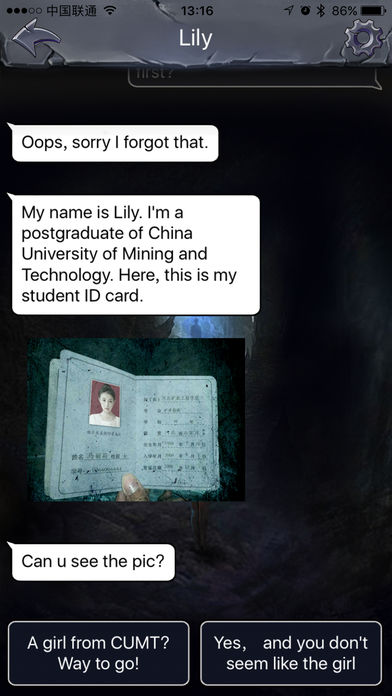 一美女研究深在一次矿场勘测中遭遇离奇矿难,并通过手机,与您建立了穿越时空的联系。刚开始一切看上去只是一次普通的矿难,但是随着主角和您的共同努力,渐渐发现了隐藏在矿难背后的秘密,甚至还发现了矿洞下面的千年古墓…… IN TOMB是一款关于“选择”的文字冒险游戏。在游戏中,您将穿越时空,通过手机短信与生活在过去的矿难受害者女主角建立神奇的联系。您将帮助她在绝境中求生,做出各种选择,并共同面对结果。 ====================================== 本游戏将以实时的时间线进行展开,支持iPhone和iPad。您将时不时的收到女主角发来的短信提示,给她建议或者帮她做出选择。游戏拥有不止一个结局,您的选择将对整个故事造成深远的影响。请发挥您绝境求生的智慧与决心,帮助主角存活下来并找到背后的秘密! ====================================== 同时,您也可以回溯时光,在某个选择处做出不同的选择,以此了解游戏会有怎样不同的走向。总之,一切都掌握在你的手中! ====================================== *更新修复闪退及其他莫名其妙BUG; *优化游戏舒适扮演体验; *优化更高大上美术资源; ====================================== √独特的文字冒险游戏:您的每一次选择都很关键! √惊险刺激的绝境求生:您有足够的求生本领吗? √话唠可爱的女性主角:忍心就这样看她被困? √绝对真实的时间展开:给你最真实的游戏体验 √独一无二的中国古墓:只属于中国玩家的Tomb Raider √难以忘怀的游戏体验:一切只在IN TOMB! ====================================== INTOMB-粉丝QQ群:550150455
