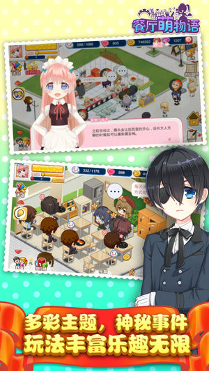 《餐厅萌物语》是一款二次元风格的模拟经营及养成手游,融合了大量时下流行的动漫元素。在游戏中你将作为店长,在萌萌的小助理陪伴下经营你的萌娘餐厅,从烹饪、研发、布置餐厅,到雇佣员工、宣传、处理外卖订单,所有事务均由你亲自安排,还可以和身边的小伙伴们进行丰富的社交活动。 游戏特点: 一、全新的二次元模拟经营 在你的专属餐厅中开拓新天地!新系统。新玩法带来传统模拟经营的重大突破,清新的日系Q版画面绝对让你萌到爆,一起来虚拟世界中感受ACG的现实吧~ 二、近百位人气动漫角色 上神大人、看板娘、电波少女、邪眼系萝莉任君挑选,丰富的养成互动元素让你和最爱的角色零距离接触,还有几百种原汁原味的动漫服饰随意…