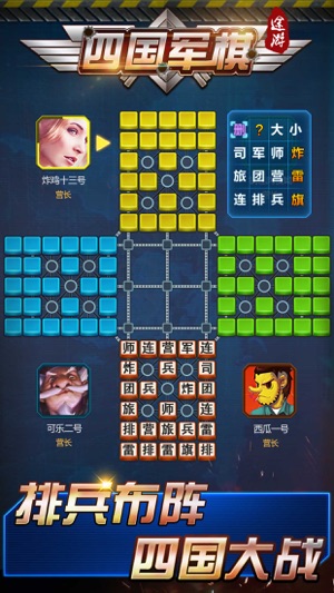 军棋(又叫陆战棋)是我国深受欢迎的棋类游戏之一。当四人游戏时,又叫四国军棋,四人在棋盘上分占四角,分为两方,相对的两家联盟与另外两家对抗,互相配合战斗。 棋盘: 行走路线包括公路线和铁路线,显示较细的是公路线,任何棋子在公路线上只能走一步,显示为粗黑的为铁路线,铁路上没有障碍时,工兵可在铁路线上任意行走,其它棋子在铁路线上只能直走或经过弧形线,不能转直角弯; 棋子落点包括结点、行营、两个司令部,行营是个安全岛,进入以后,敌方棋子不能吃行营中的棋子,军棋必须放在司令部中,进入任何司令部的棋子不能再移动。 棋子布局的限制: 炸弹不能放在第一行,地雷只能放在最后两行,军棋只能放在司令…
