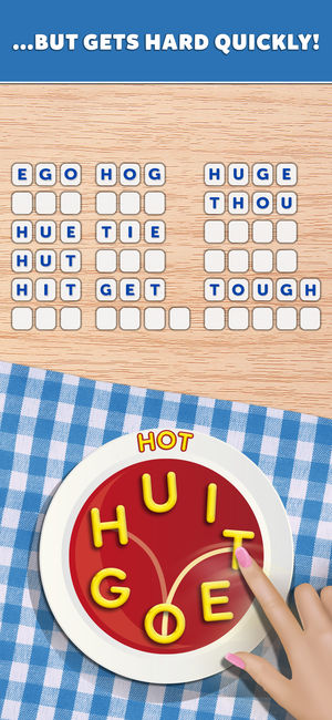 Swipe the letters in your soup to form words! Use your noodle to find all of the words and move from one café to the next in this scintillating soup saga! This tasty new word puzzle will fill you up for months!