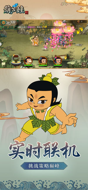 游戏简介: 还原葫芦娃动画经典,我们不毁童年! 阳光游戏,童年的经典,与王祖蓝相遇,齐心协力兄弟情深! 精品游戏,彰显怀旧魅力,与王祖蓝携手,畅享不一样的游戏体验! 最专业的手游,最专心的制作,与《葫芦娃》首席娱乐官王祖蓝一起拯救爷爷! 一起打蛇精,救爷爷,闯入《葫芦娃》的世界来吧! 由上海美术电影制片厂正版授权,以86年《葫芦兄弟》剪纸动画片为背景的手游大作。深度还原动漫情节,开创横版战斗手游全新玩法,挥别传统AI组队、电脑控制,策略搭配,默契组合,与游戏好友实时互动,共闯妖巢!当年的你,只能看着电视屏幕暗自捉急,如今,你却可以带着团结勇敢的葫芦娃们,拼荆斩棘,怒破妖洞大门!此番能否救出…