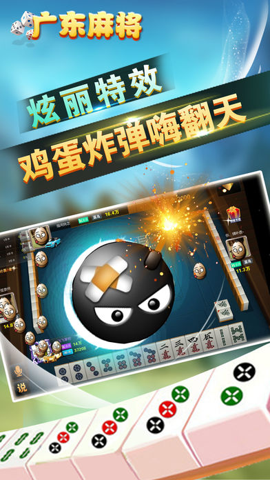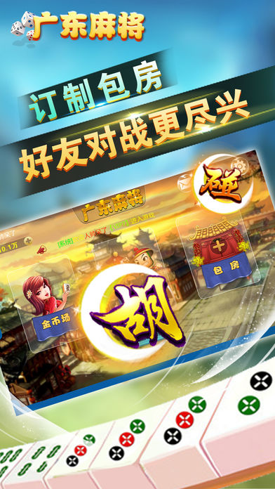 广东麻将游戏棋牌平台,万人在线,每日大奖赛,金币领不停,同城乐广东麻将是地道的广东本地麻将打法。广东麻将采用的是3D场景技术,是用户体验舒适的棋牌手游!同时广东麻将还支持互联,可以和朋友同时在线玩地道的广东麻将。 庄家: 第一盘游戏系统随机选取一名玩家为庄家。庄家胡牌,则庄家继续做庄,闲家胡牌,则现任庄家的下一家坐庄。和牌,则现任庄家的下一家坐庄。庄家拥有当局第一轮出牌权。 拿牌: 摸牌前由庄家掷出两个骰子, 两个骰子中大的点数为开口方向,小的点数为留牌墩数。庄家开始抓牌。庄家抓14张,闲家13张。 和牌: 即流局、荒牌,打完最后一张牌没有人胡牌(留四张牌为码牌)。和牌不计任何分 码牌: 胡牌者从牌墩当前位置顺时针摸走四张牌做为码牌。码牌即庄家为159,庄家下家为26,庄家对家为37,庄家上家为48.麻将牌值对应的码牌值即1-9万、条、筒分别对应123456789.东南西北对应1234,中发白对应123。胡牌中一个码即胡牌分*2、中二码胡牌分*3,中三码胡牌分*4,中四码胡牌分*5 注意:胡牌分不包括杠分 吃牌: 赣州自摸麻将不允许吃牌。 碰牌: 指任一家打出牌后,报“碰”者把自己的对子取出,加在一起组成一副碰子,并且按规定将此副牌倒下。 杠牌: 直杠:玩家拿出手中三张同样的牌去杠当前其他玩家所弃之牌。杠分3分,谁放谁出 补杠:玩家碰牌后,又摸到杠牌,选择去杠牌。杠分3分,其余三家各出1分 暗杠:玩家手中持有了四张一样的牌,此时玩家可以选择从手中把牌拿出来杠牌。暗杠时不亮任何一张给别家看。在牌局结束后,应亮出暗杠牌值。杠分6分,其余三家各出2分 补牌: 玩家杠牌后,从牌墩尾部补牌(牌局只有四张牌时不允许杠牌) 抢杠: 玩家胡的牌值是另一玩家直杠或者补杠的牌值,此时玩家可以进行抢杠胡。被抢杠胡的该杠不计杠分。 抢杠胡算自摸,按胡牌牌型,由杠牌人一家出三家钱 胡牌: 赣州自摸麻将只能自摸,不能放炮胡。 胡牌的基础牌型: (1) 11、111 (1111下同)、111、111、111 (2) 11、111、111、111、123 (3) 11、111、111、123、123 (4) 11、111、123、123、123 (5) 11、123、123、123、123 (6) 11、11、11、11、11、11、11 (其中:1=单张 11=将、对子 111=刻子 1111=杠 123=顺子)