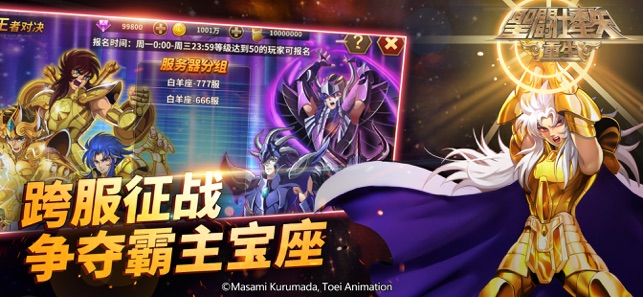 东映动画、车田正美正版授权,大受好评的手游《圣斗士星矢》热血重生,为了答谢玩家支持,年度大作《圣斗士星矢:重生》重燃来袭! 青春!热血!幻想!致敬经典三十年,还原原著剧情,带你重燃童年热血记忆:挑战银河争霸赛,突破黄金十二宫,决战海皇波塞冬,突破叹息之壁,粉碎哈迪斯的阴谋,圣斗士的热血历程再度重燃!召集曾经的伙伴,爆发小宇宙,为女神与和平再战! ● 东映动画、车田正美正版授权 游戏由东映动画、车田正美正版授权,作为《圣斗士星矢》诞生三十周年致敬之作,同名手游热血“重生”!电影式剧情演播还原原著情节;精细2D+3D美术完整呈现恢宏场景;全系列角色集合;自由打造自己最喜爱的圣斗士队伍;经典的对…