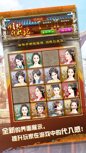 穿越千年的你回到了明代后宫,从一名身份卑微的秀女开始,步步为营慢慢走向成后之路。 1、创新的宫斗类消除游戏 将宫斗的激烈竞争,尔虞我诈,展示在这方寸之间,轻松游戏的同时,也能体会到位份提升的艰辛。 2、独特的游戏风格 打破以往同类产品简单风格的束缚,精心刻画细节,力求增加玩家在游戏中的代入感。