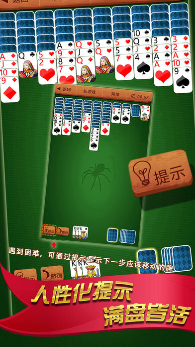 制作精美,秒杀一切的蜘蛛纸牌小游戏,快来试玩吧! 特色: - 单机挑战,智能统计胜负率 - 经典的撤销和提示两大道具帮助你顺利通关 - 多种难度选择,想玩哪种玩哪种